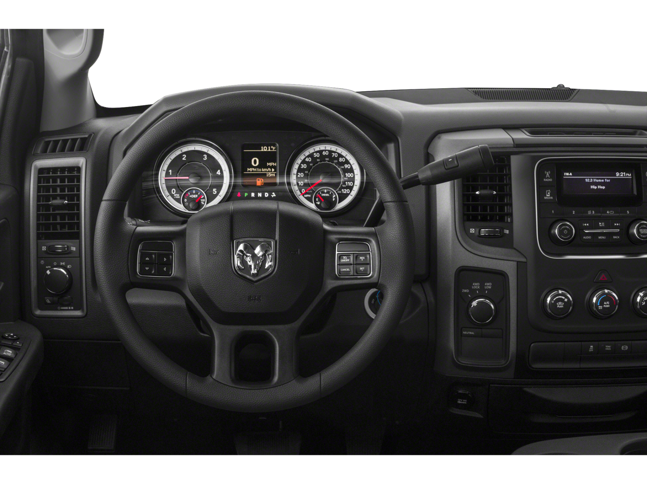 Inside, the spacious and well-appointed cabin offers a comfortable and functional driving experience. The Uconnect 3.0 infotainment system with integrated voice command and Bluetooth® connectivity keeps you connected on the go. The cloth 40/20/40 split bench seat provides ample room for passengers, while the front armrest and storage tray add convenient storage solutions.