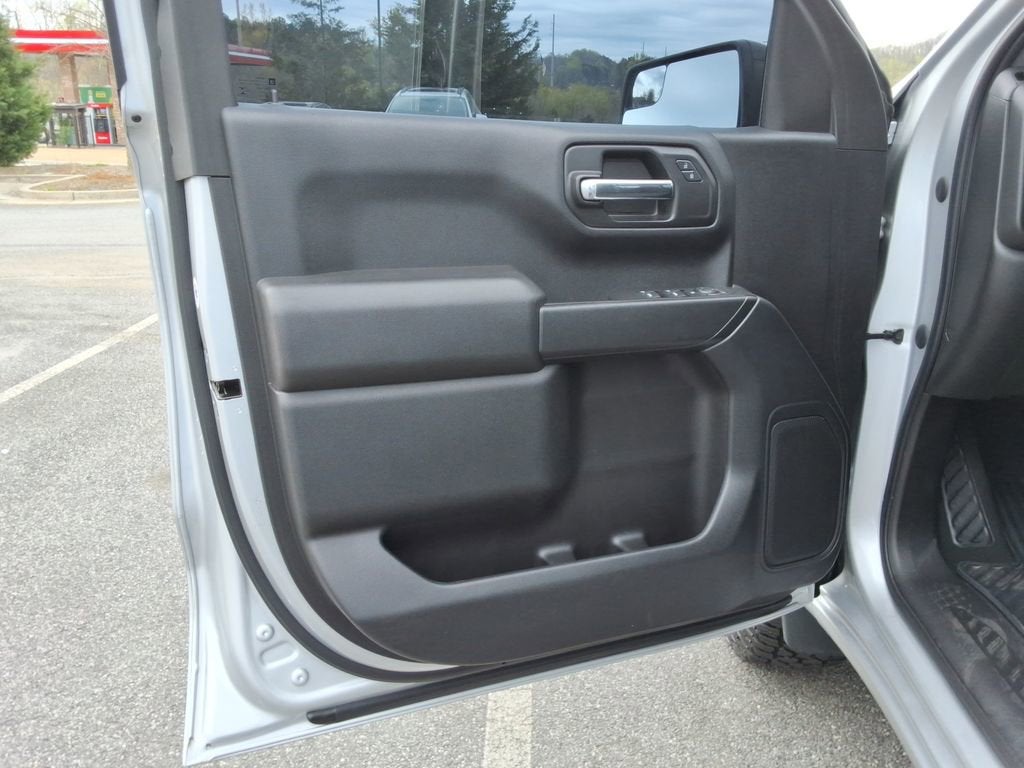 Exterior highlights include the high-gloss black grille, LED cargo area lighting, and performance red recovery hooks, giving this Silverado a bold and rugged appearance. Inside, you'll find a comfortable and well-appointed cabin with premium cloth seating, a 40/20/40 front split bench, and a rear 60/40 folding bench seat.