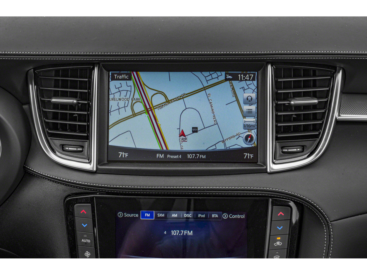 - Radio: AM/FM/CD Audio System -inc: 6 speakers, 4 USB connection ports, Apple CarPlay and Android Auto, dual display system w/upper 8" and lower 7" HD touch screens, INFINITI voice recognition, HD Radio technology, SiriusXM radio w/advanced audio features w/3-month complimentary trial, streaming audio via Bluetooth, Bluetooth hands-free phone system, Siri eyes free, hands-free text messaging assistant, active noise cancellation, WiFi hotspot, automatic collision notification and emergency call