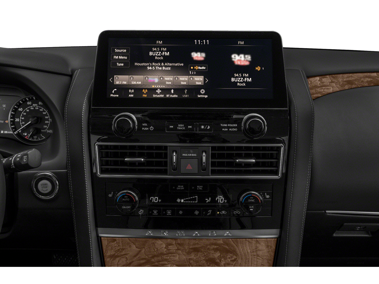 - Radio: NissanConnect w/SiriusXM -inc: 13-speaker Bose audio system, wireless Apple CarPlay, Android Auto, Nissan door to door navigation, 12.3" color display w/multi-touch control, SiriusXM Traffic and Travel Link w/3 month complimentary trial access, NissanConnect services powered by SiriusXM, Bluetooth hands-free phone system, hands-free text messaging assistant and Wi-Fi hotspot