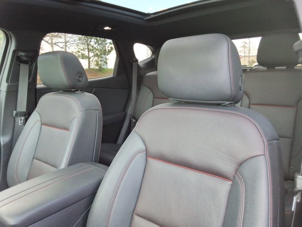 Meticulously crafted with premium features, the Blazer RS boasts a stunning appearance that commands attention. The vehicle's striking two-tone roof, black illuminated front bowtie emblem, and 21-inch high-gloss black wheels with a machined face create a bold, distinctive look that sets it apart from the crowd. The power panoramic sunroof with a power sunshade adds an extra touch of sophistication, allowing you to enjoy the open sky above.