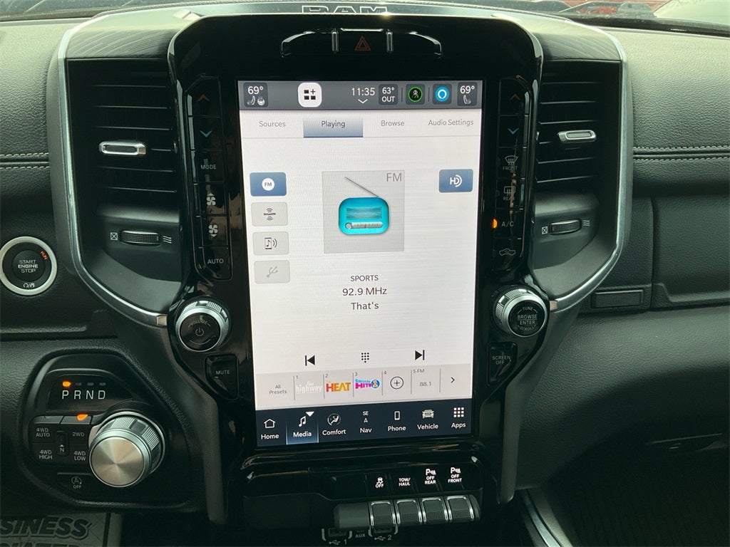 2nd Row In Floor Storage Bins, 3 Rear Seat Head Restraints, 4 Way Front Headrests, 4G LTE Wi-Fi Hot Spot, Apple CarPlay, Auto High Beam Headlamp Control, Black Interior Accents, Blind Spot & Cross Path Detection, Body Color Exterior Mirrors, Body Color Front Bumper, Body Color Premium Power Mirrors, Body Color Rear Bumper w/Step Pads, Bucket Seats, Connected Travel & Traffic Services, Connectivity - US/Canada, Driver Seat Memory, Electric Shift-On-Demand Transfer Case, Foam Bottle Insert (Door Trim Panel), For Details, Visit DriveUconnect.com, For More Info, Call 800-643-2112, Front Door Accent Lighting, Front LED Fog Lamps, Front Seat Back Map Pockets, Full Length Upgraded Floor Console, Global Telematics Box Module (TBM), Google Android Auto, GPS Navigation, Grille Surround 3 Body Color Tex 2 Black, HD Radio, Heated Front Seats, Heated Second Row Seats, Heated Steering Wheel, Integrated Voice Command w/Bluetooth®, Laramie Level 1 Equipment Group, Leather Trimmed Bucket Seats, LED Reflector Headlamps, ParkSense Front/Rear Park Assist w/Stop, Power 2-Way Driver Lumbar Adjust, Power 2-Way Passenger Lumbar Adjust, Power 8-Way Driver & Passenger Seats, Power Adjustable Pedals w/Memory, Quick Order Package 27H Laramie, Radio: Uconnect 5 Nav w/12.0 Display, Rain Sensitive Windshield Wipers, RAM Grille Badge - Chrome, Rear 60/40 Folding Seat, Rear Door Accent Lighting, Rear Power Sliding Window, Rear Window Defroster, Remote Tailgate Release, SiriusXM Radio Service, SiriusXM w/360L, Sport Appearance Package, Sport Performance Hood, USB Host Flip, Ventilated Front Seats, Wheels: 20 x 9 Premium Painted w/Inserts.