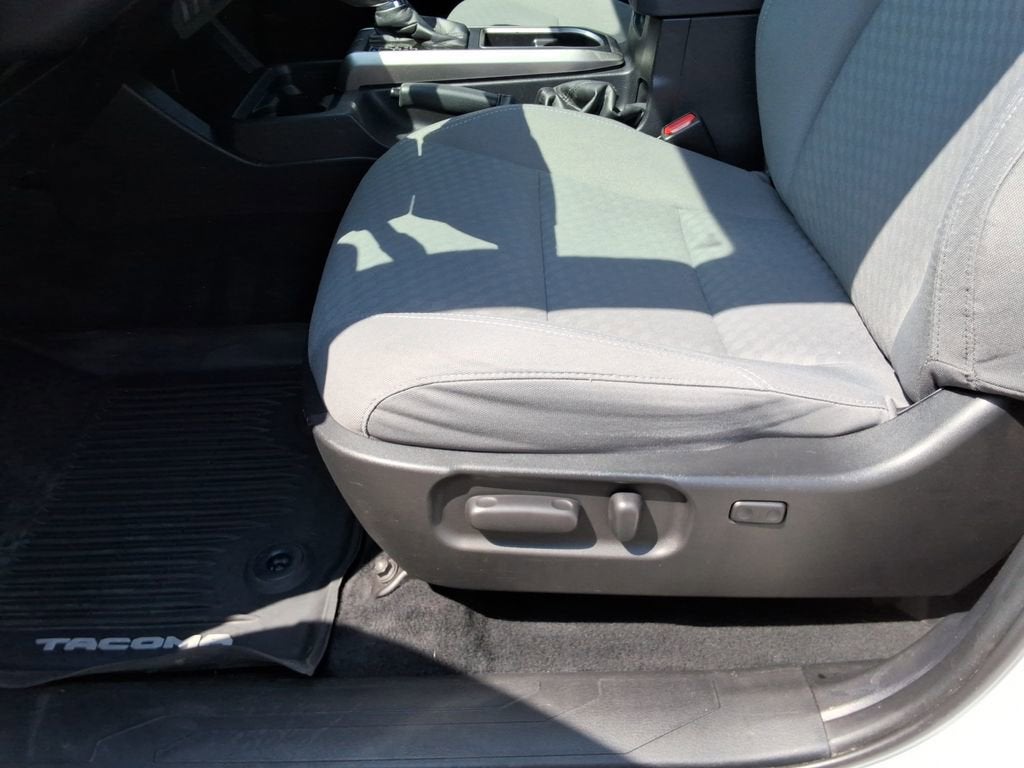 This Tacoma's exterior boasts a sleek White color, complemented by a Bar Gray Ring Chrome Front Grille and body-color bumpers. The interior offers a comfortable and well-equipped cabin, with features like Automatic temperature control, Power driver seat, Steering wheel mounted audio controls, and Apple CarPlay/Android Auto compatibility.