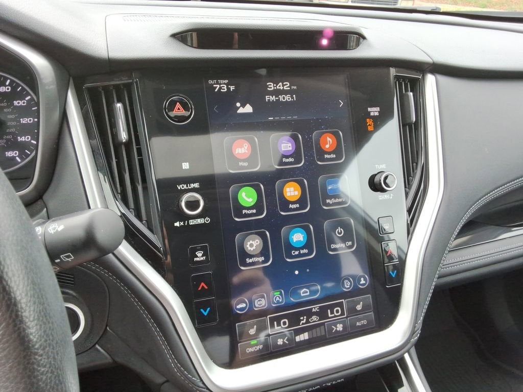 Step inside and be captivated by the Outback's premium cabin, featuring 12 speakers, a Harman Kardon sound system, and the intuitive Subaru STARLINK 11.6 Multimedia Navigation System. Dual-zone automatic climate control, a power liftgate, and a panoramic moonroof elevate your comfort, while the perforated leather-trimmed upholstery and heated front and rear seats create a truly indulgent driving environment.